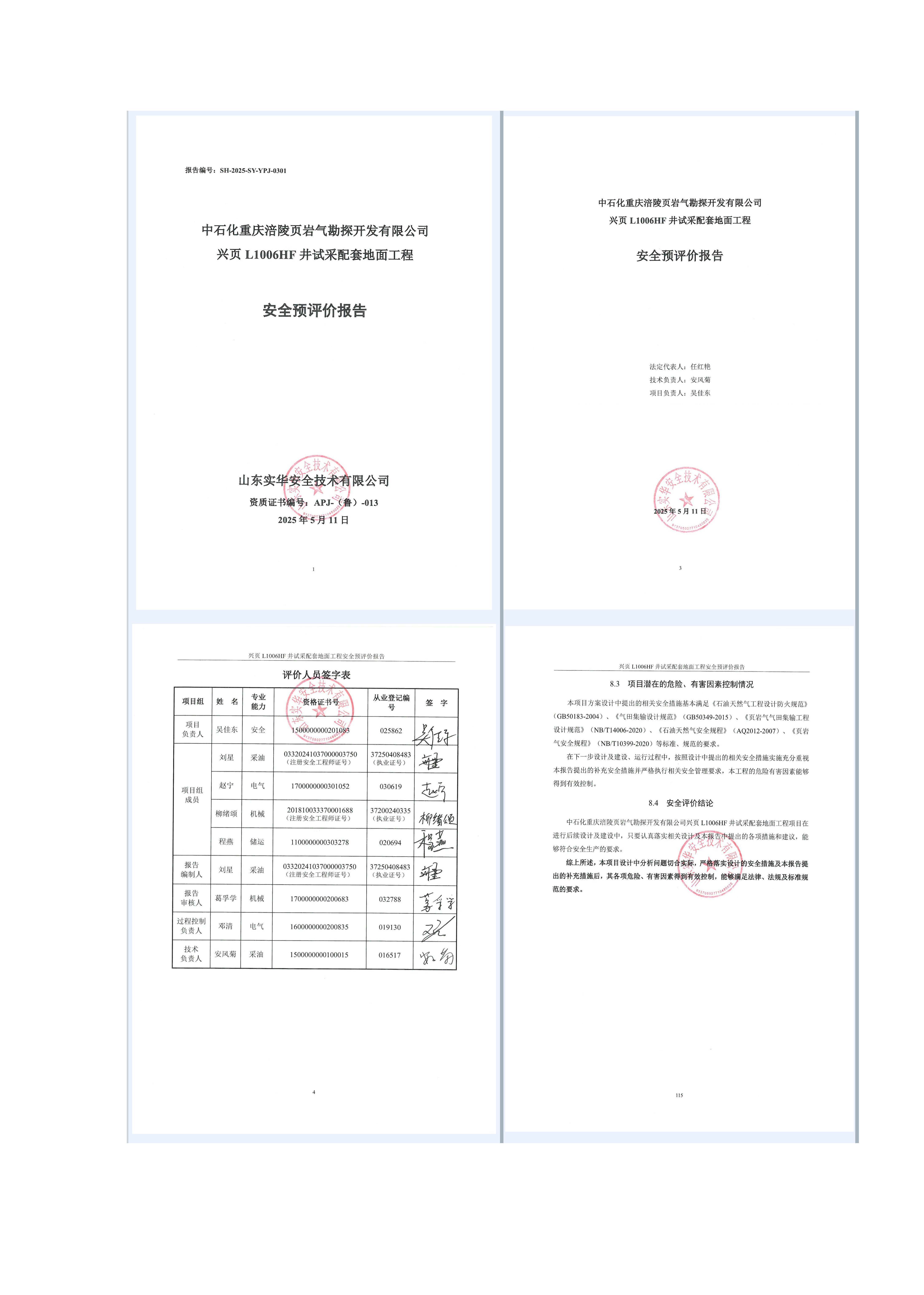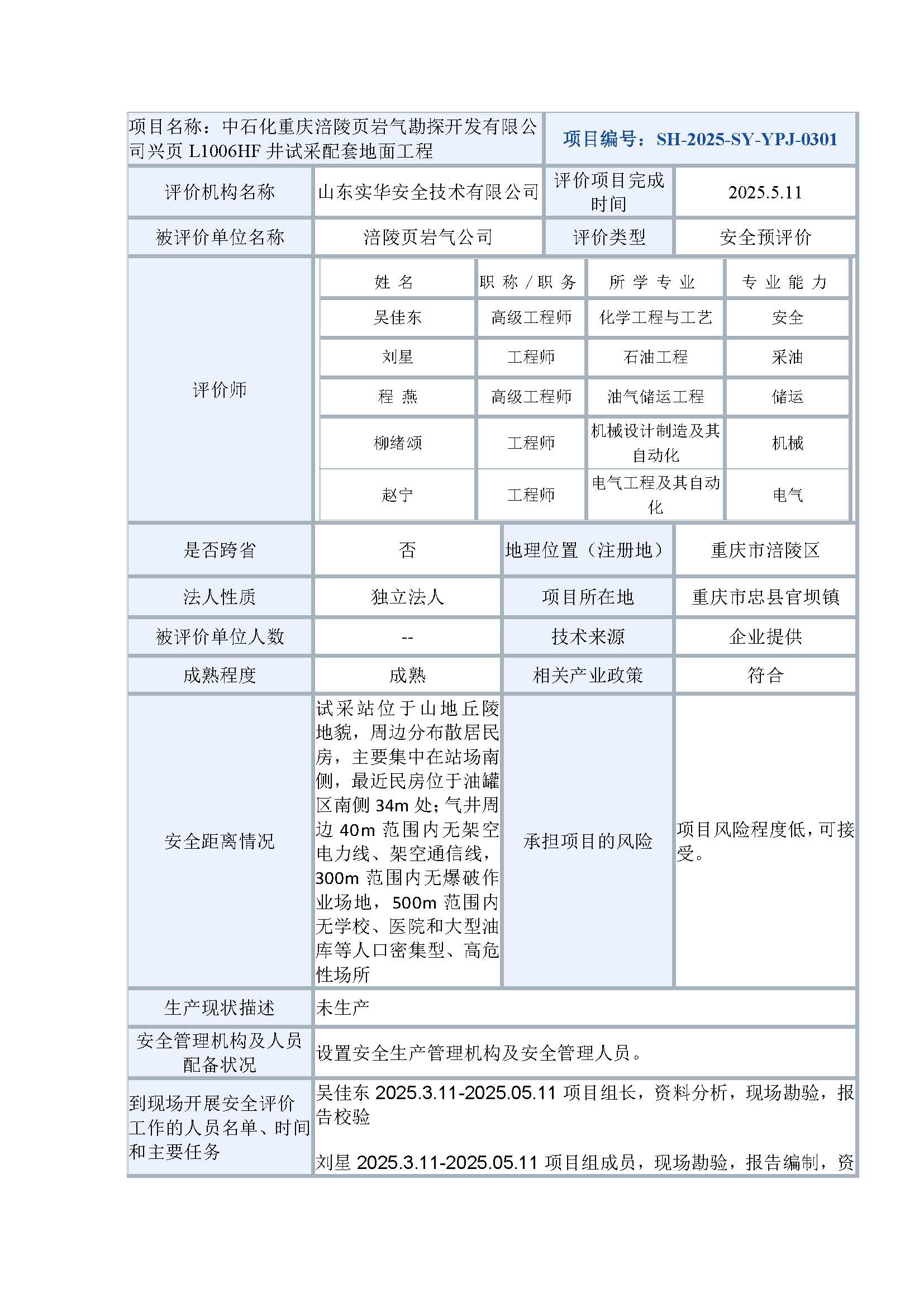 中石化重慶涪陵頁(yè)巖氣勘探開(kāi)發(fā)有限公司興頁(yè)L1006HF井試采配套地面工程安全預(yù)評(píng)價(jià)