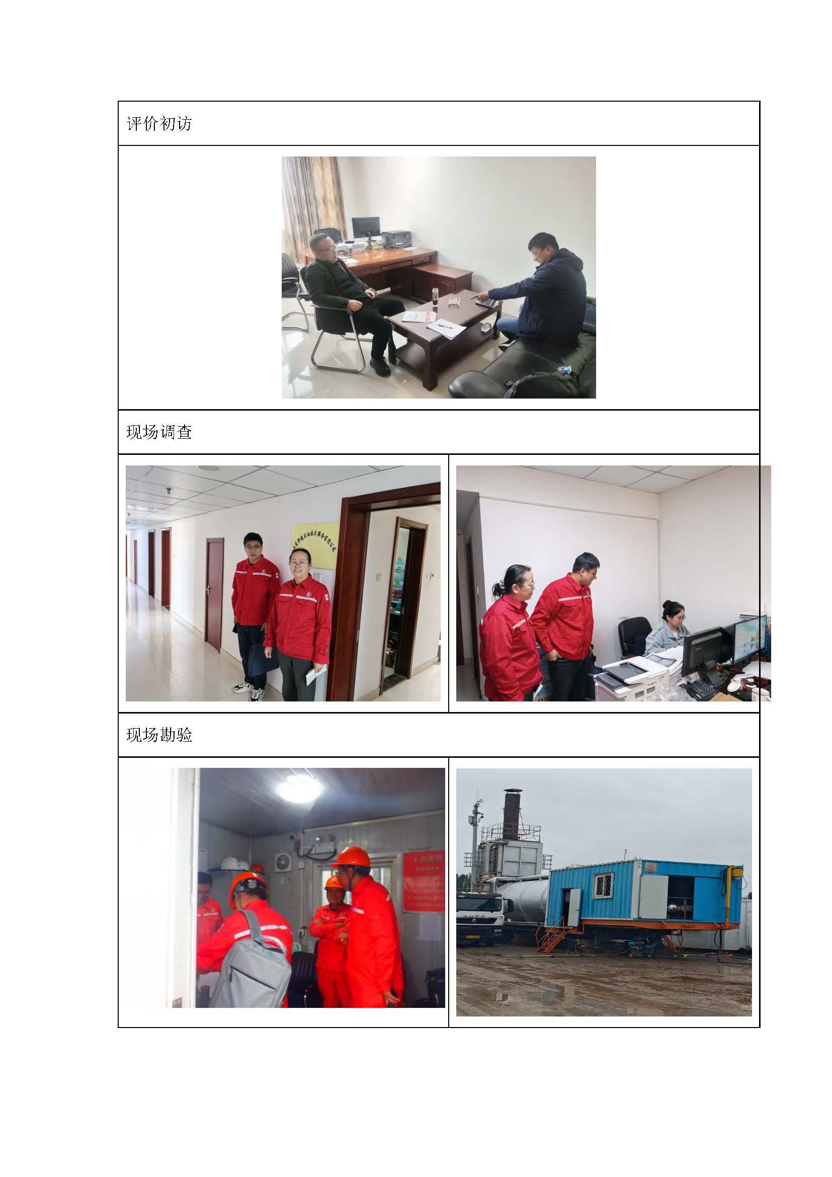 到現場開展安全評價工作的人員名單、時間和主要任務 |